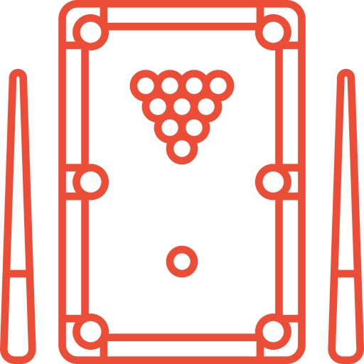 O ambiente conta com mesa de sinuca, mesa de pebolim, churrasqueira, área de lazer para confraternizações,